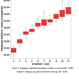 Kroz ovaj rad su osim združenosti visine i promjera rožišta utvrđene značajne promjene visine i promjera rožišta u odnosu na starost. Tako je regresijski koeficijent visine rožišta i starosti značajan i iznosi R = 0,65 (STAROST = 15,25 – 0,18 x visina rožišta) (visina rožišta se smanjuje sa starosti), također je i regresijski koeficijent promjera rožišta i starosti značajan i iznosi R = 0,85 (STAROST = 0,25 x promjer rožišta – 4,72) (promjer rožišta se povećava sa starosti).